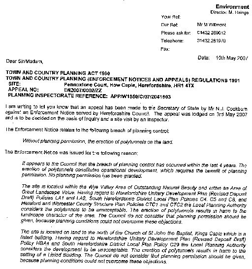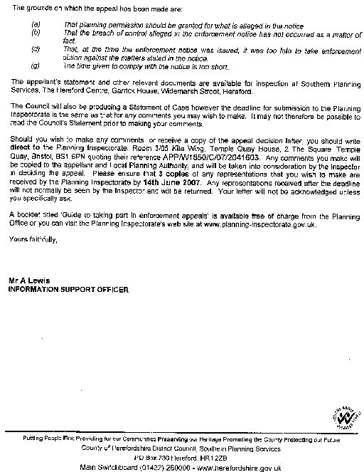 Appeal against enforcement following withdrawal from planning application DCSE2006/3267/F