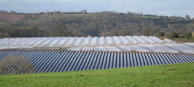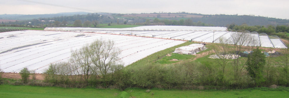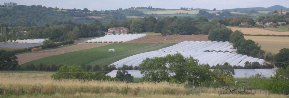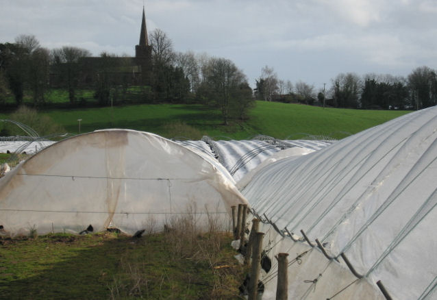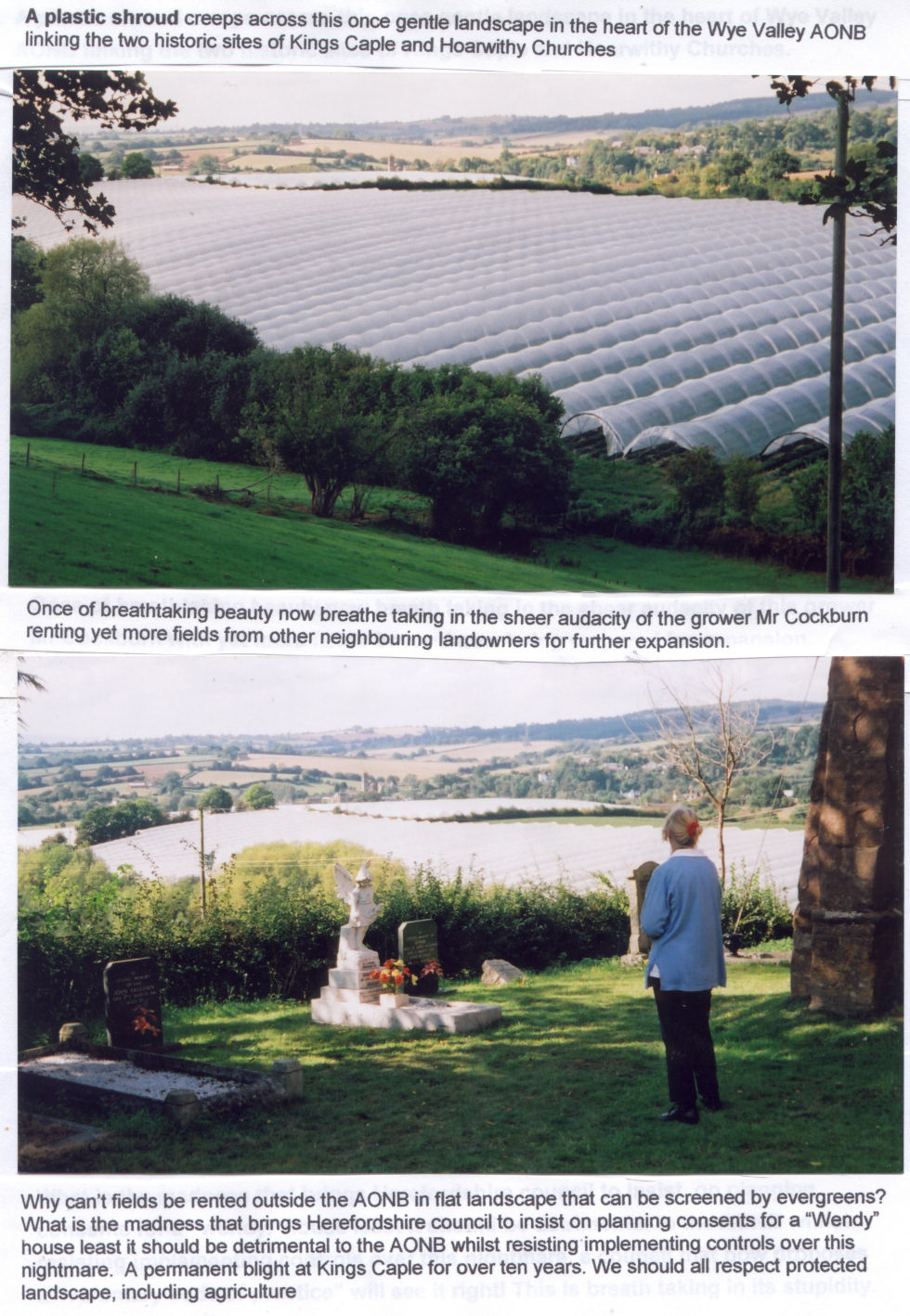 Polytunnels surrounding Kings Caple Church - Wye Valley designated (AONB)