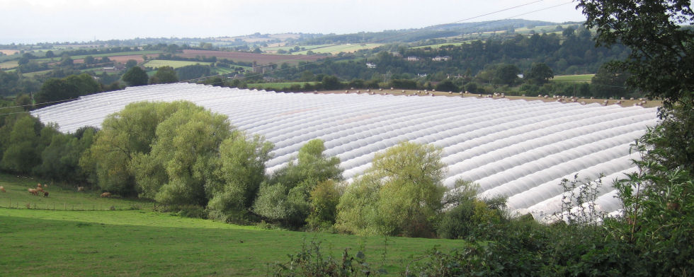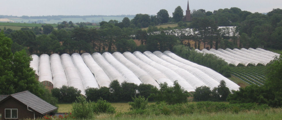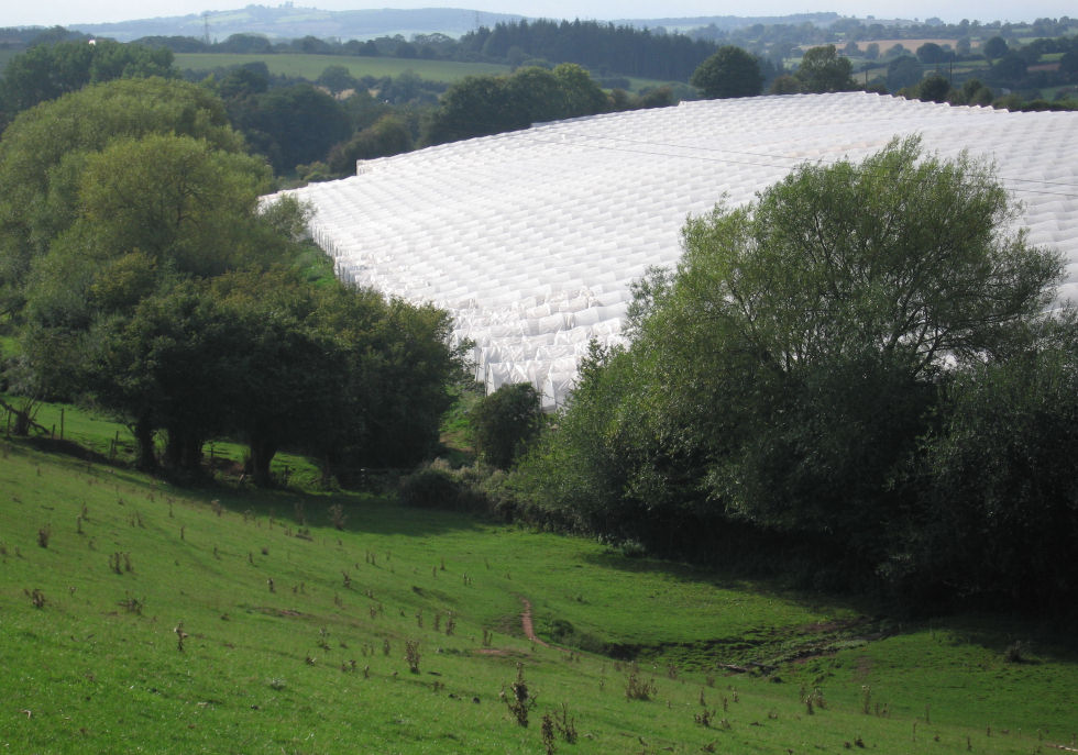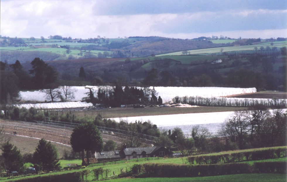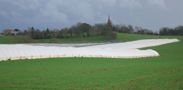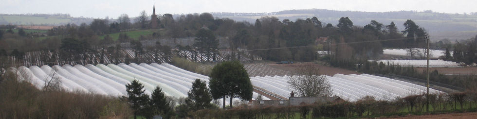 Polytunnels surrounding Kings Caple Church - Wye Valley designated (AONB)